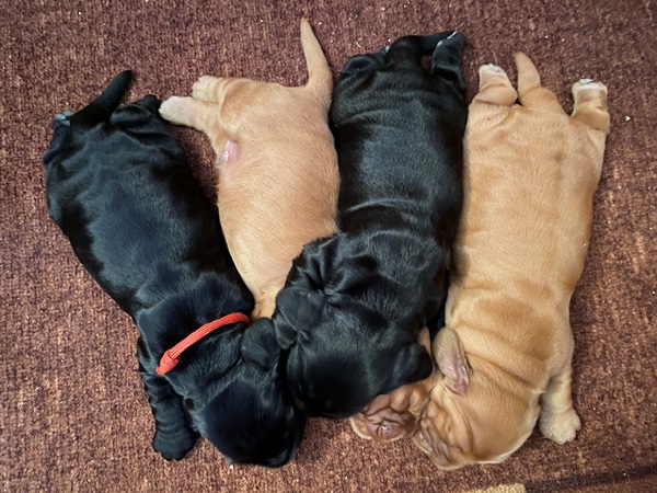 Mladički stari 1 teden Dne 30. marca 2025 smo dobili mladičke, imamo dva samčka in dve psički. Mamica in vsi mladički so super!