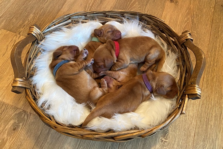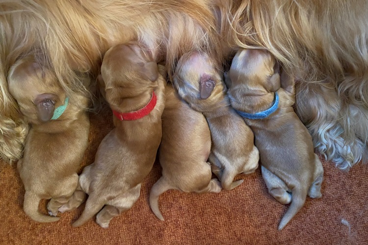 Grand Ch Bumble Bee of English Lady (zlato rjava) Optigen A, FN clear, AON carrier, HD A |