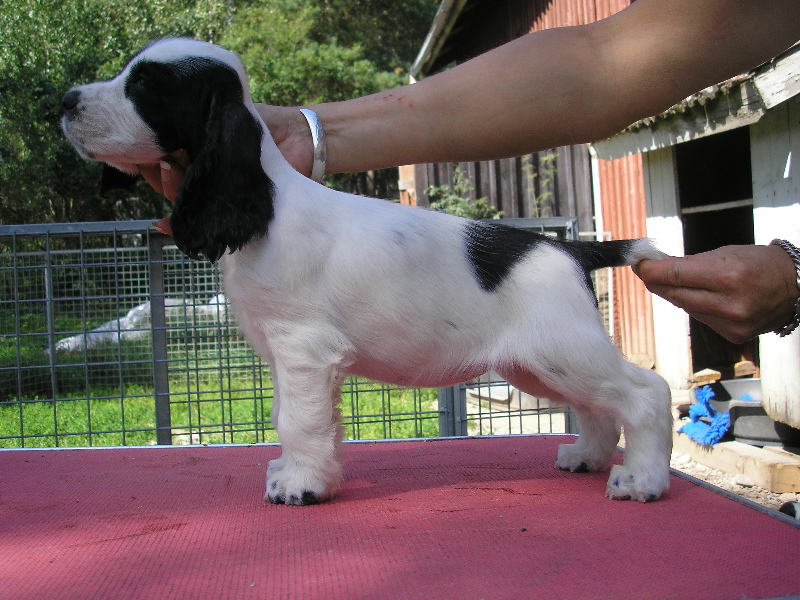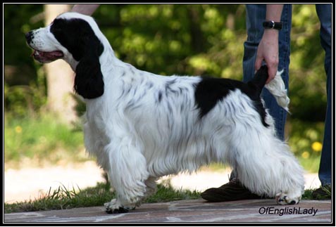 Born: 08.06.2007, Colour: black/white Breeder: Kennel Northworth, Owner: Kennel of English Lady, Nina Voncina Eyes: OptiGen Prcd-PRA: normal/clear (A1) by parents, Hips: HD A (minus) Show results: BIS Baby, Speciality BOB Puppy, BIS-3 Puppy, Multi BOB Young Winner, Multi BOB Winner, BOG-3 Young, Multi CAC, CACIB, BOG-2 Working results: Obedience test B-BH 93 points, Working trial III. NR Ch.J.-SLO, Ch.J.-MNE and Ch.J.-CRO Ch.-BOL, Ch.-MNE, Ch.-MAC, Ch.-SLO
